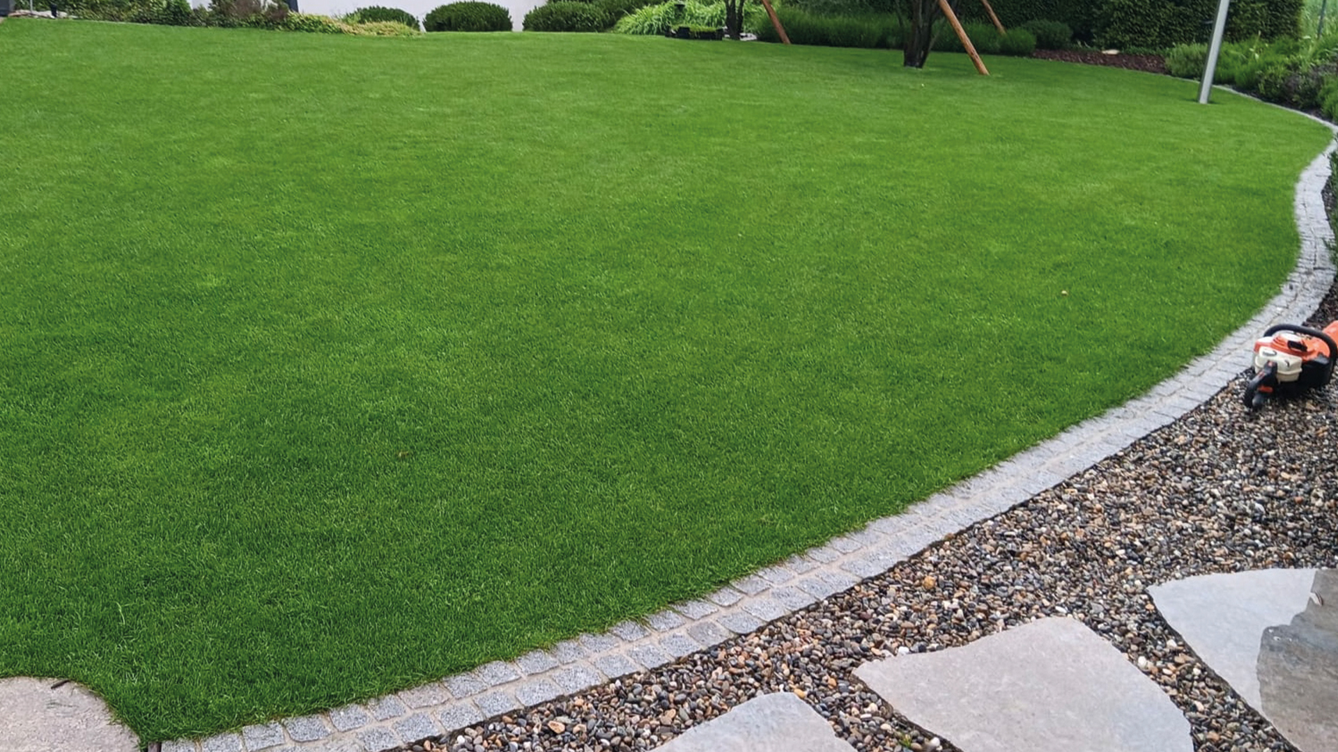 Sobald der Rasen wächst, ist regelmäßiges Mähen wichtig – idealerweise einmal pro Woche. So wird der Rasen dichter und gepflegter.